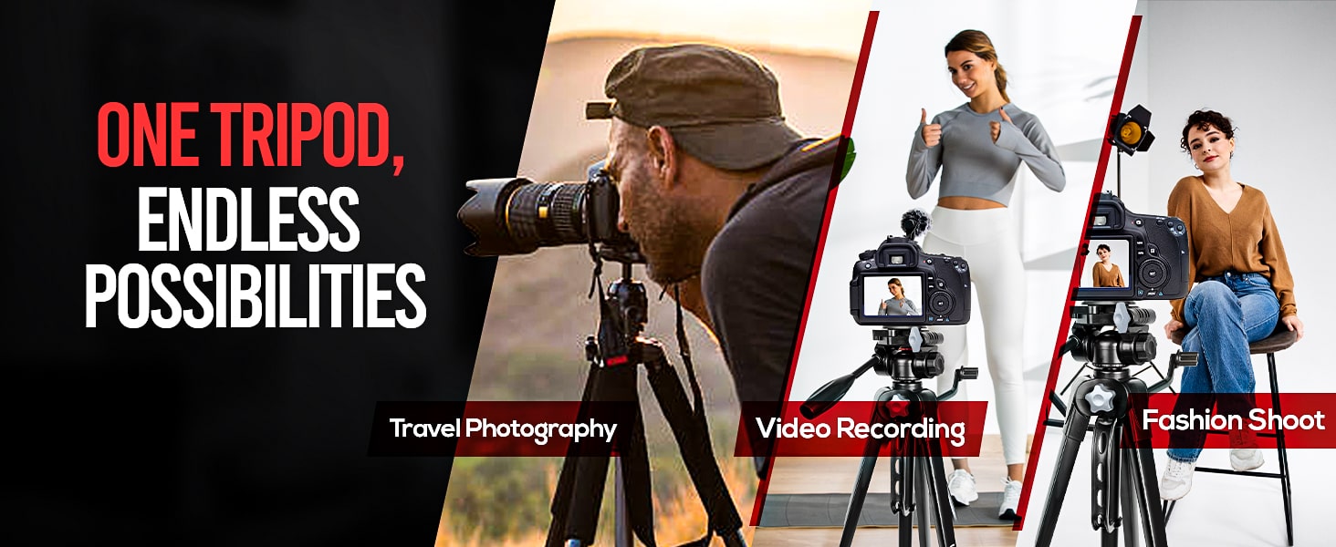 • Adjustable 67" Height with Compact Folding Desgin: Extendable up to 67 inches and foldable into a lightweight, travel-friendly size, it adapts perfectly to every shooting scenario—from tabletop product photography to outdoor landscapes and professional shoots.